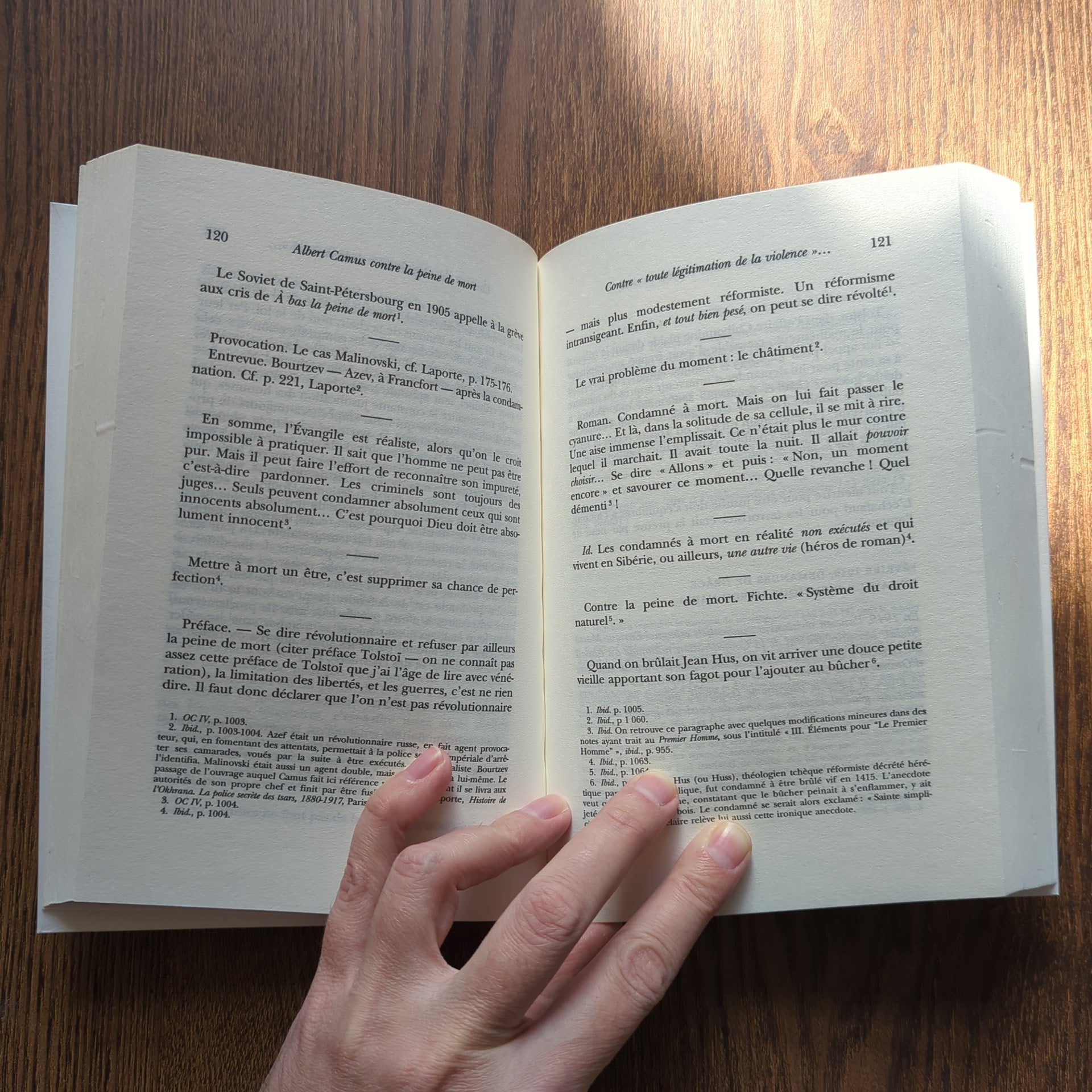 L'ouvrage s'achève sur un essai d'Ève Morisi étudiant le motif de la peine capitale dans les romans d'Albert Camus (L'Étranger, La Peste, Le Premier Homme) et "l'éthique résistante" qu'ils esquissent.