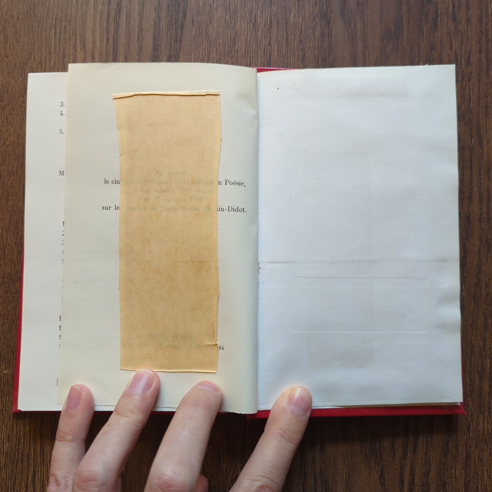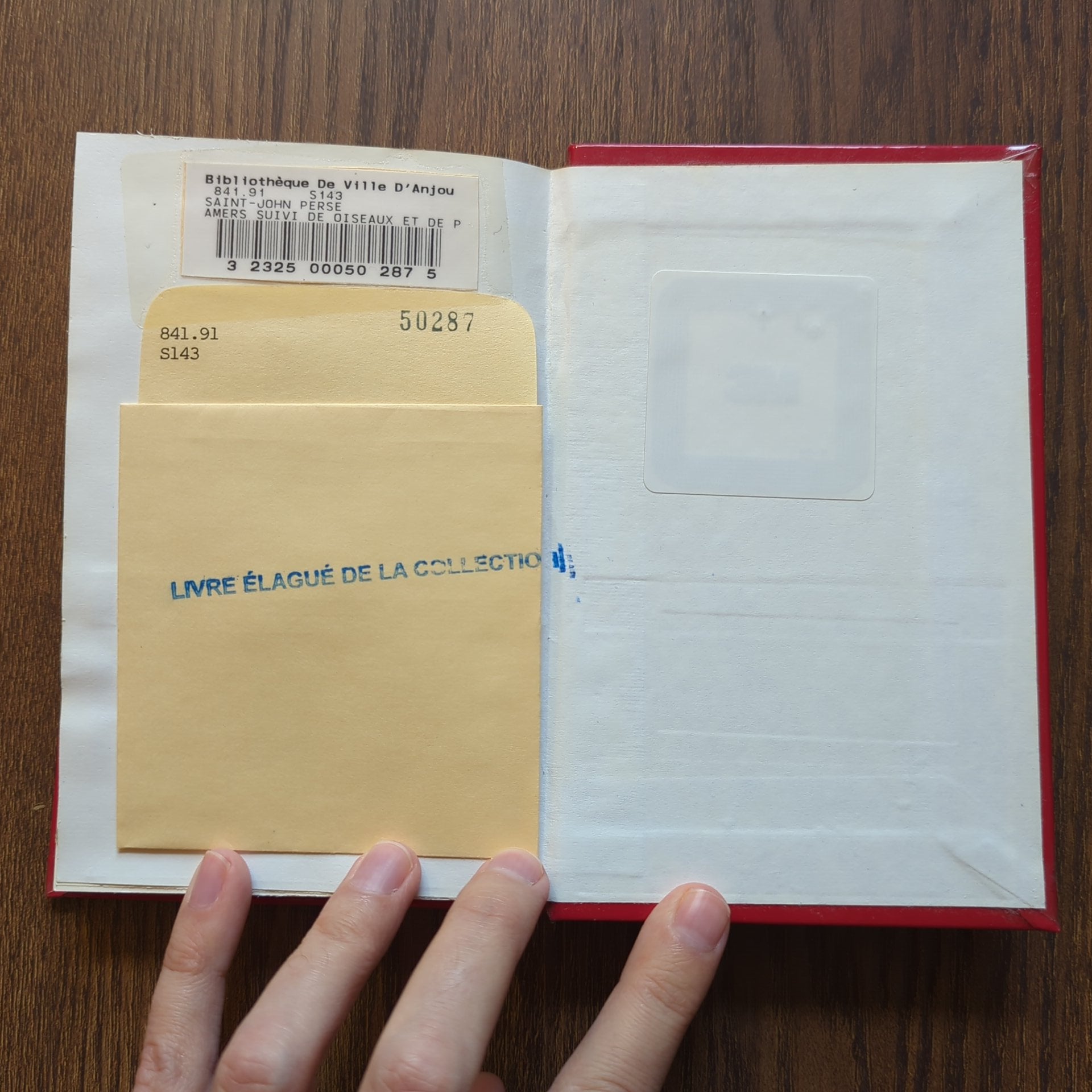 Remarques: Ancien livre de bibliothèque; présence d'autocollants, de code-barres, d'étampes. Reliure de bibliothèque. Reliure solide. Pages jaunies. Grande bande autocollante non-identifiée sur l'une des dernières pages. Une page souffrant d'une déchirure "réparée" au scotch d'un côté. Texte sans annotations.