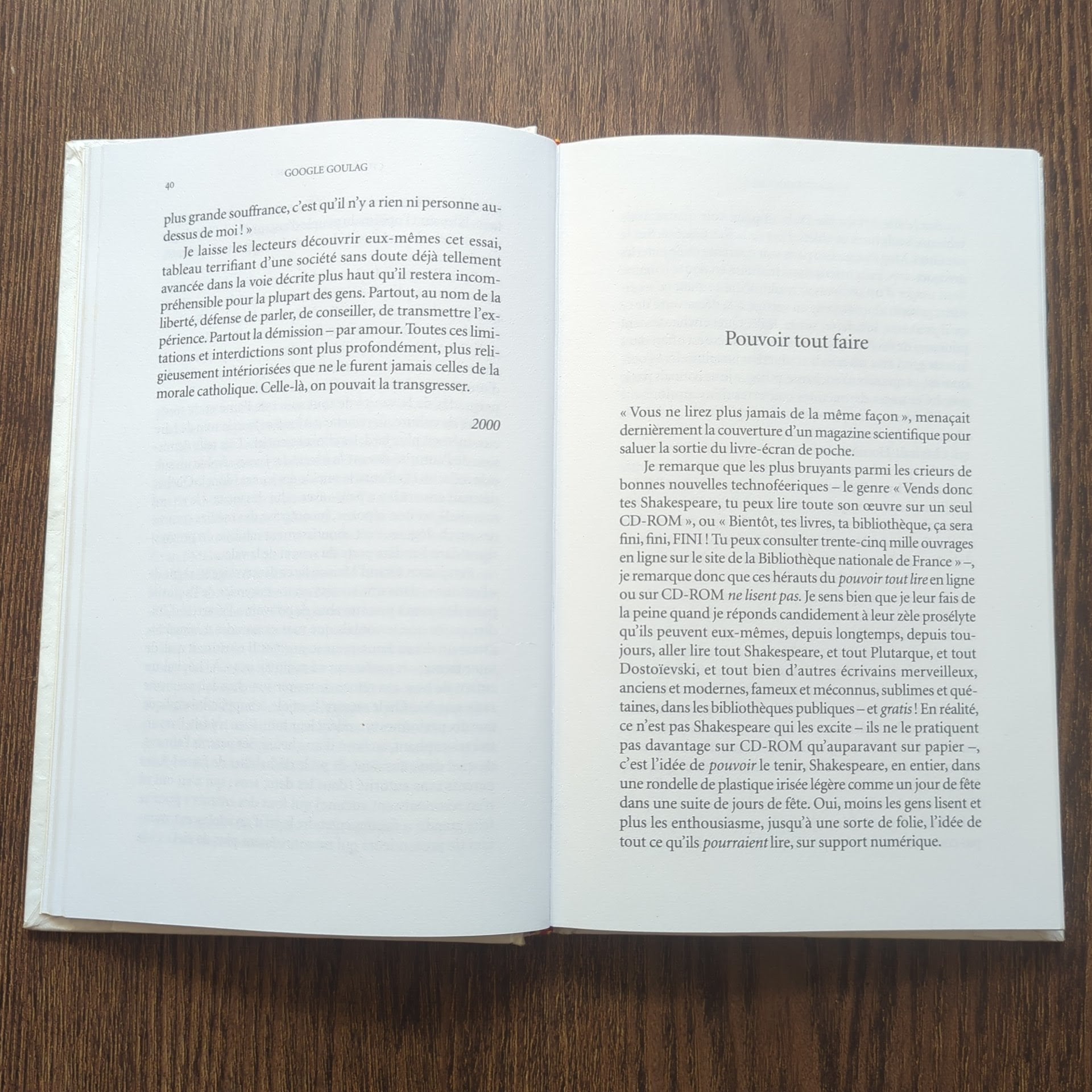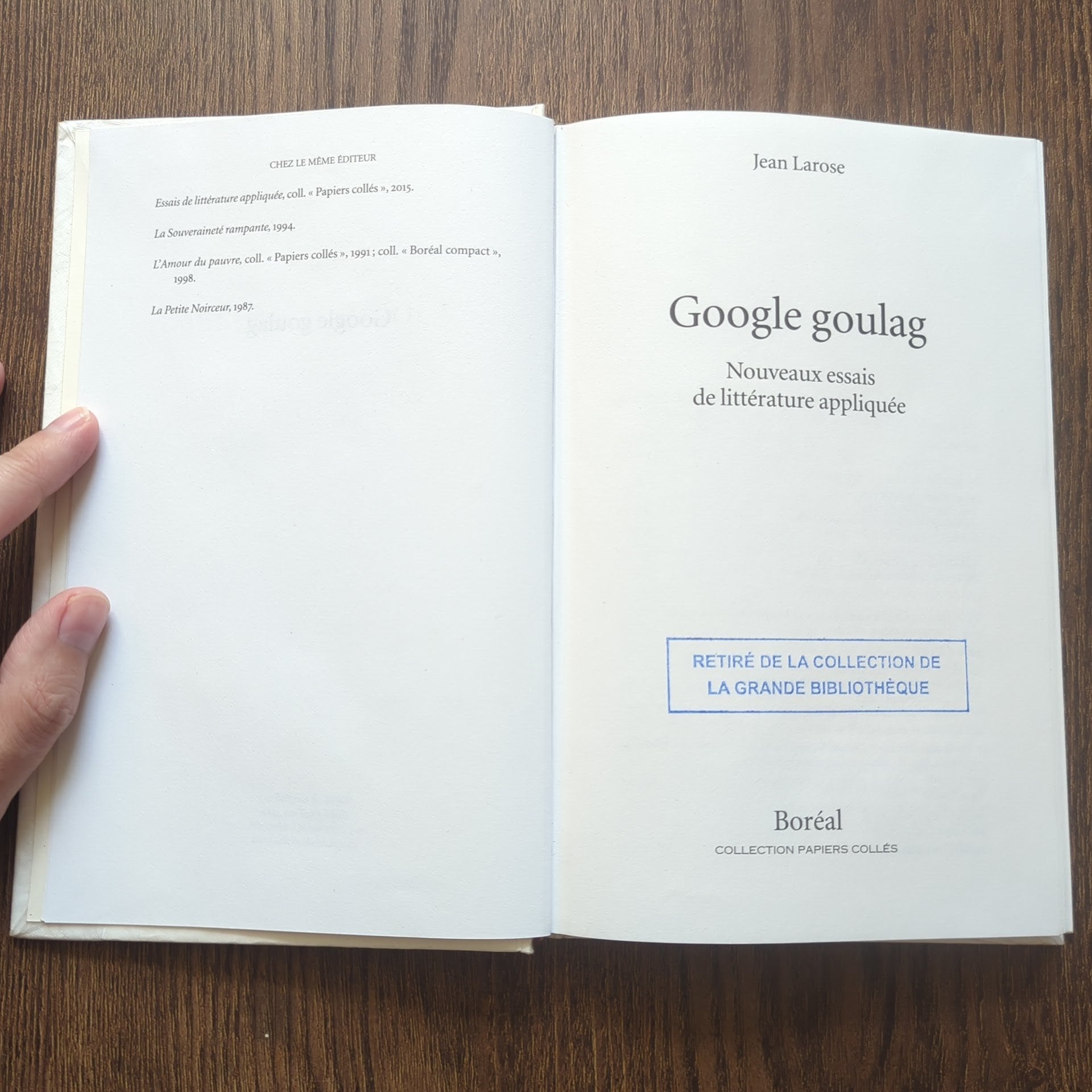 Tableau général de notre époque, une époque dans laquelle, si vous interrogez Google à propos de Varlam Chalamov, l'auteur des Récits de la Kalyma, le "moteur de recherche" vous renseigne sur le "goulag" et vous offre en même temps des vacances en Sibérie, ce livre éclaire aussi ce que deviennent dans un tel contexte, tout près de nous, l'éducation, la sexualité, la politique, la culture, la poésie même, et le Québec notre patrie.