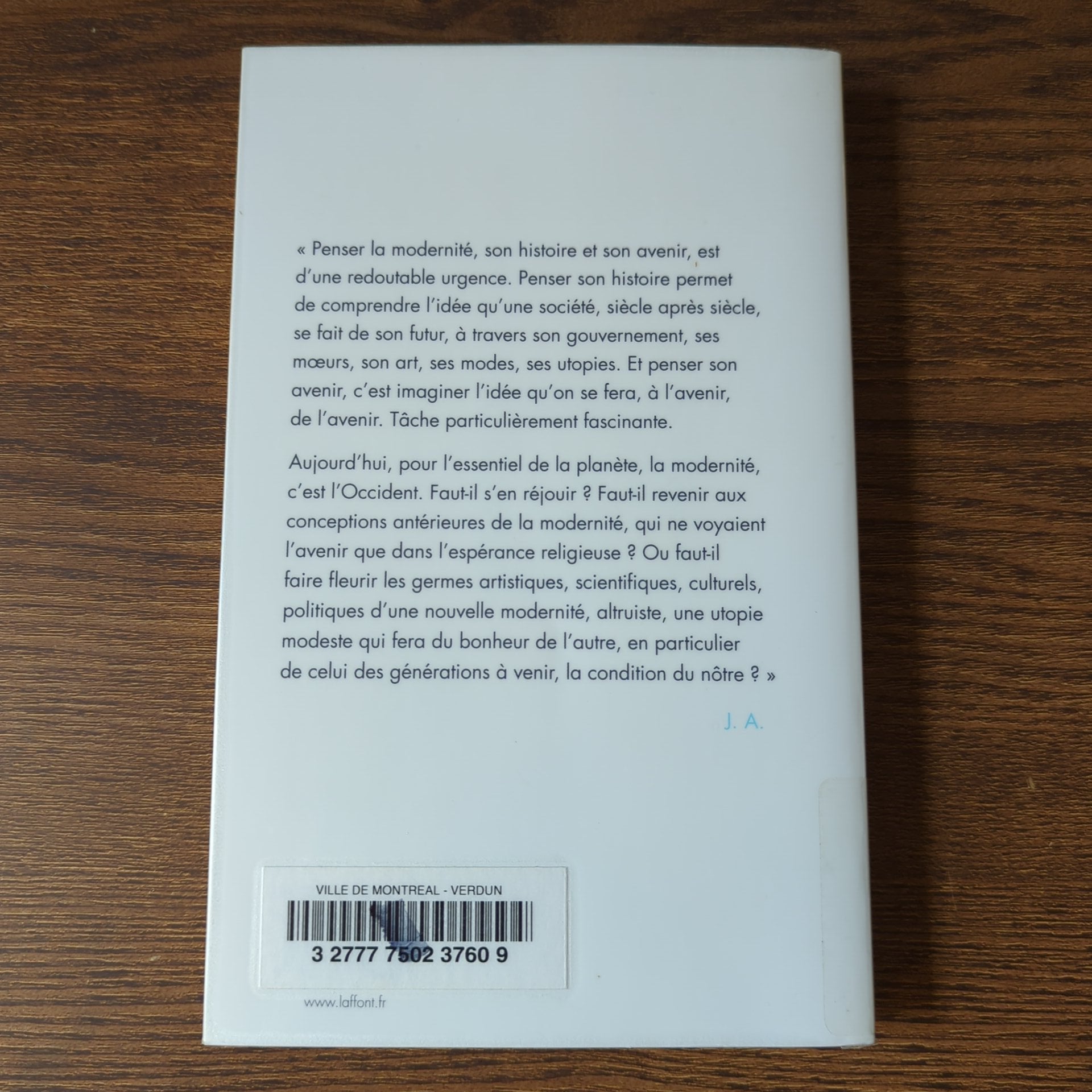 Aujourd'hui, pour l'essentiel de la planète, la modernité, c'est l'Occident. Faut-il s'en réjouir? Faut-il revenir aux conceptions antérieures de la modernité, qui ne voyaient l'avenir que dans l'espérance religieuse? Ou faut-il faire fleurir les germes artistiques, scientifiques, culturels, politiques d'une nouvelle modernité, altruiste, une utopie modeste qui fera du bonheur de l'autre, en particulier de celui des générations à venir, la condition du nôtre?