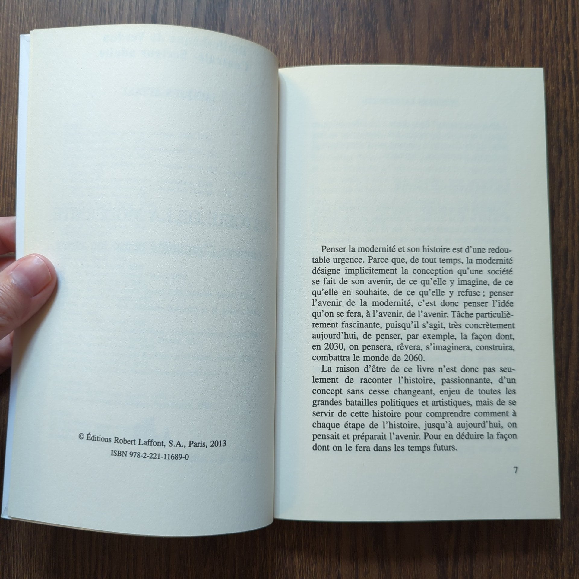 Penser la modernité, son histoire et son avenir, est d'une redoutable urgence. Penser son histoire permet de comprendre l'idée qu'une société, siècle après siècle, se fait de son futur, à travers son gouvernement, ses mœurs, son art, ses modes, ses utopies. Et penser son avenir, c'est imaginer l'idée qu'on se fera, à l'avenir, de l'avenir. Tâche particulièrement fascinante.