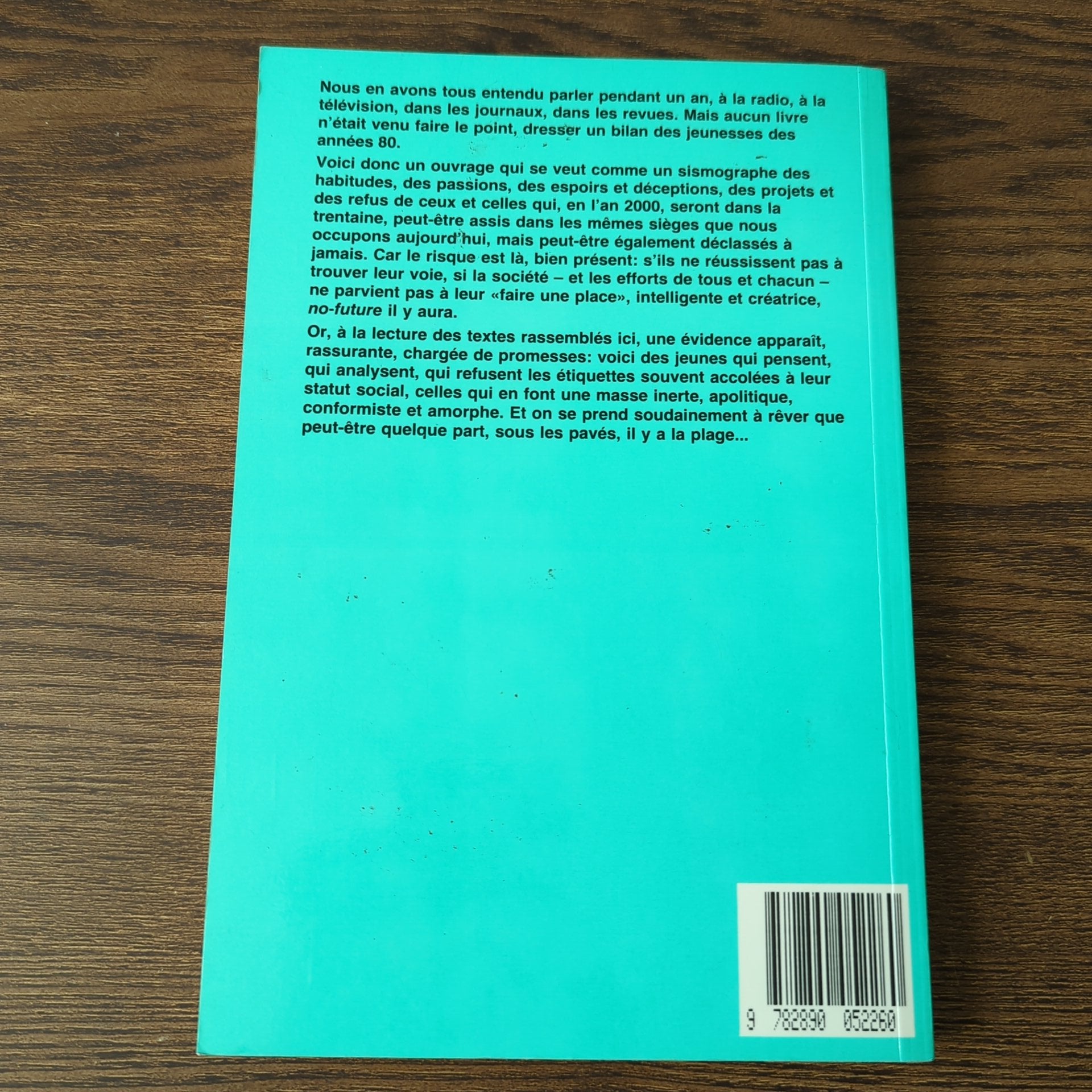 Voici donc un ouvrage qui se veut comme un sismographe des habitudes, des passions, des espoirs et déceptions, des projets et des refus de ceux et celles qui, en l'an 2000, seront dans la trentaine, peut-être assis dans les mêmes sièges que nous occupons aujourd'hui, mais peut-être également déclassés à jamais. Car le risque est là, bien présent: s'ils ne réussissent pas à trouver leur voie, si la société - et les efforts de tous et chacun - ne parvient pas à leur "faire une place", intelligente et créatrice, no-future il y aura.