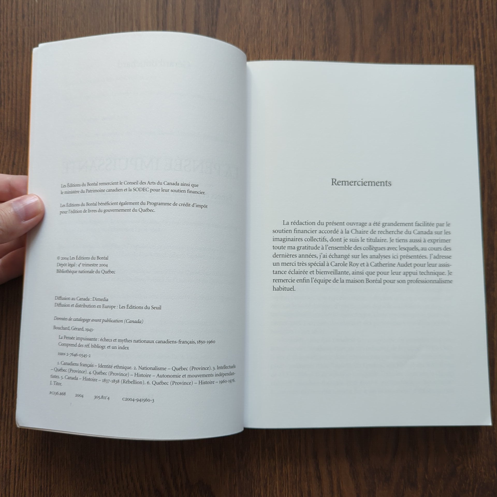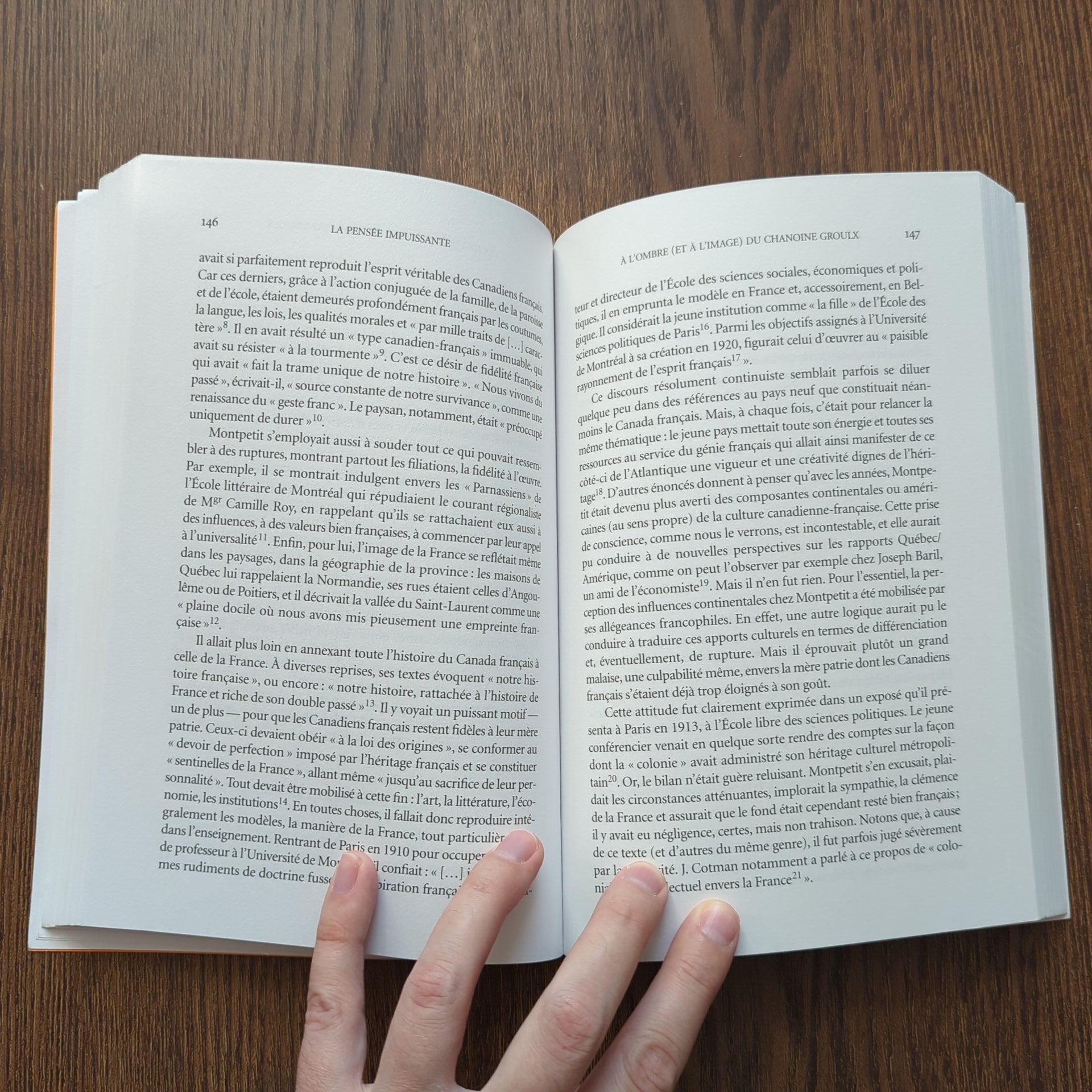 C'est dans cet esprit qu'il analyse d'abord le discours des idéologues et utopistes de la colonisation, puis la pensée d'Arthur Buies, d'Edmond de Nevers, d'Édouard Montpetit et de Jean-Charles Harvey. Dans un dernier chapitre, il revient sur la pensée du chanoine Lionel Groulx afin de prolonger les conclusions de l'ouvrage qu'il lui a déjà consacré et pour commenter les critiques que celui-ci a suscitées. Il en dégage de grandes thématiques communes, notamment celle de l'échec et de l'impuissance, assorties d'un grand rêve de reconquête.