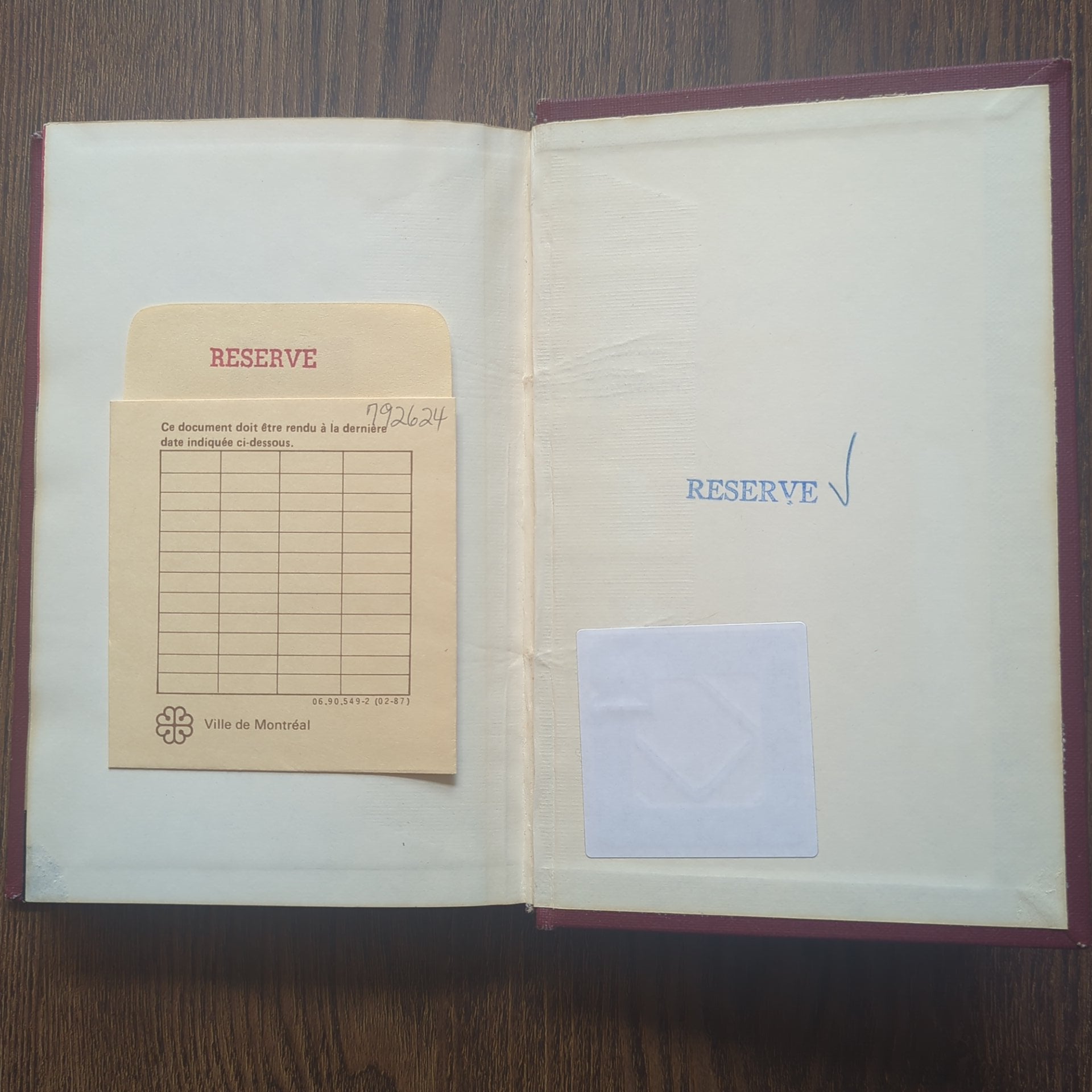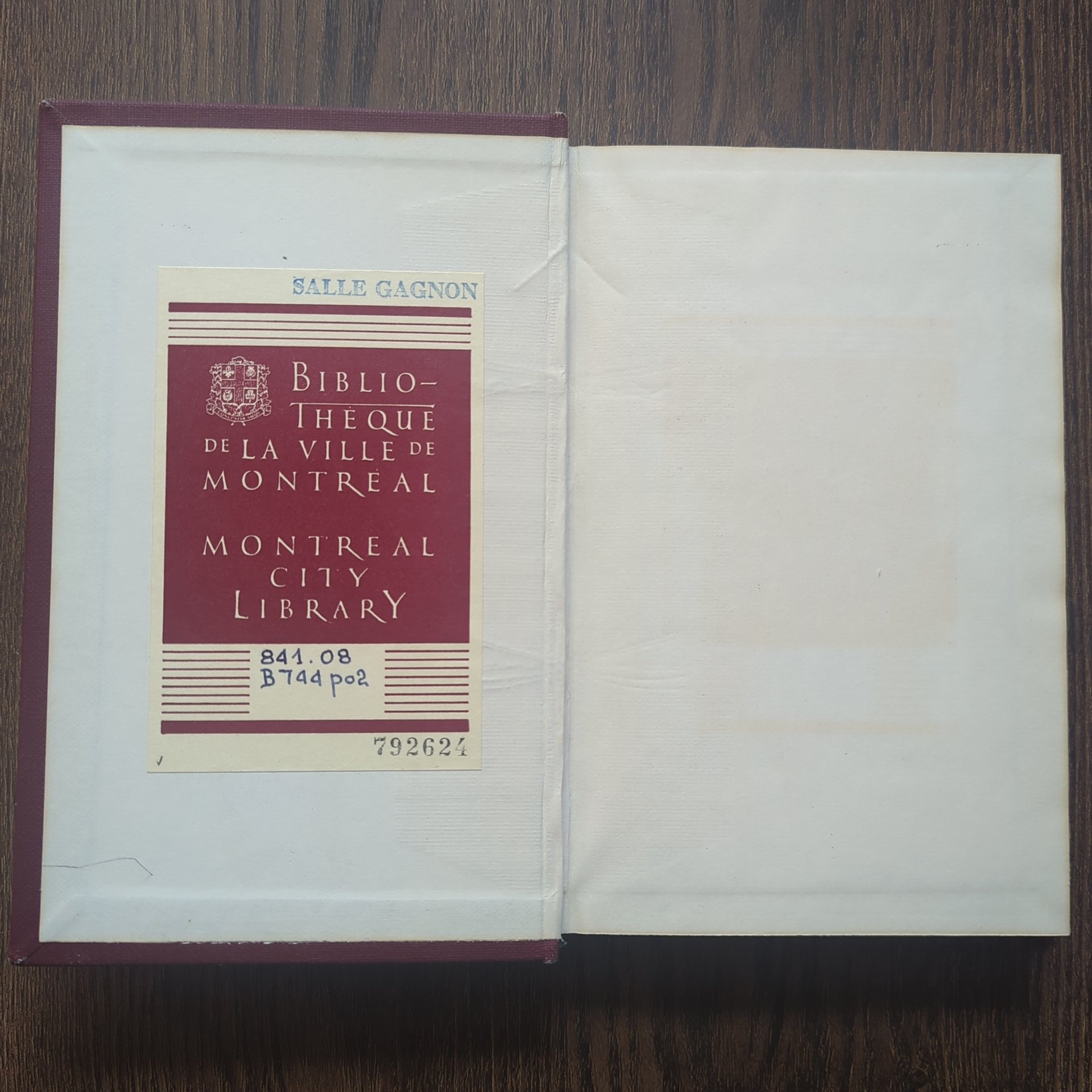 Remarques: Ancien livre de bibliothèque; présence d'autocollants, d'étampes, de code-barres et de feuillet de circulation. Couverture rigide seulement; jaquette introuvable. Pages jaunies mais propres et sans annotations. Reliure solide.