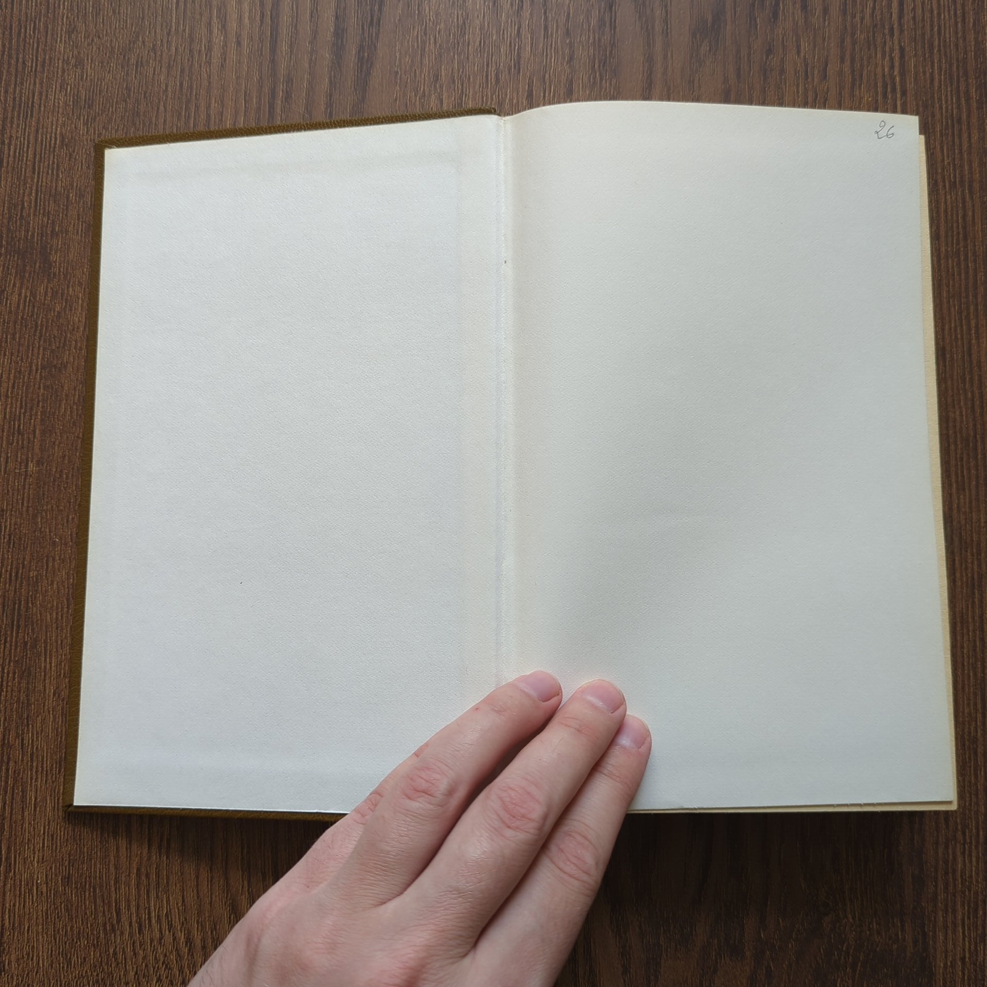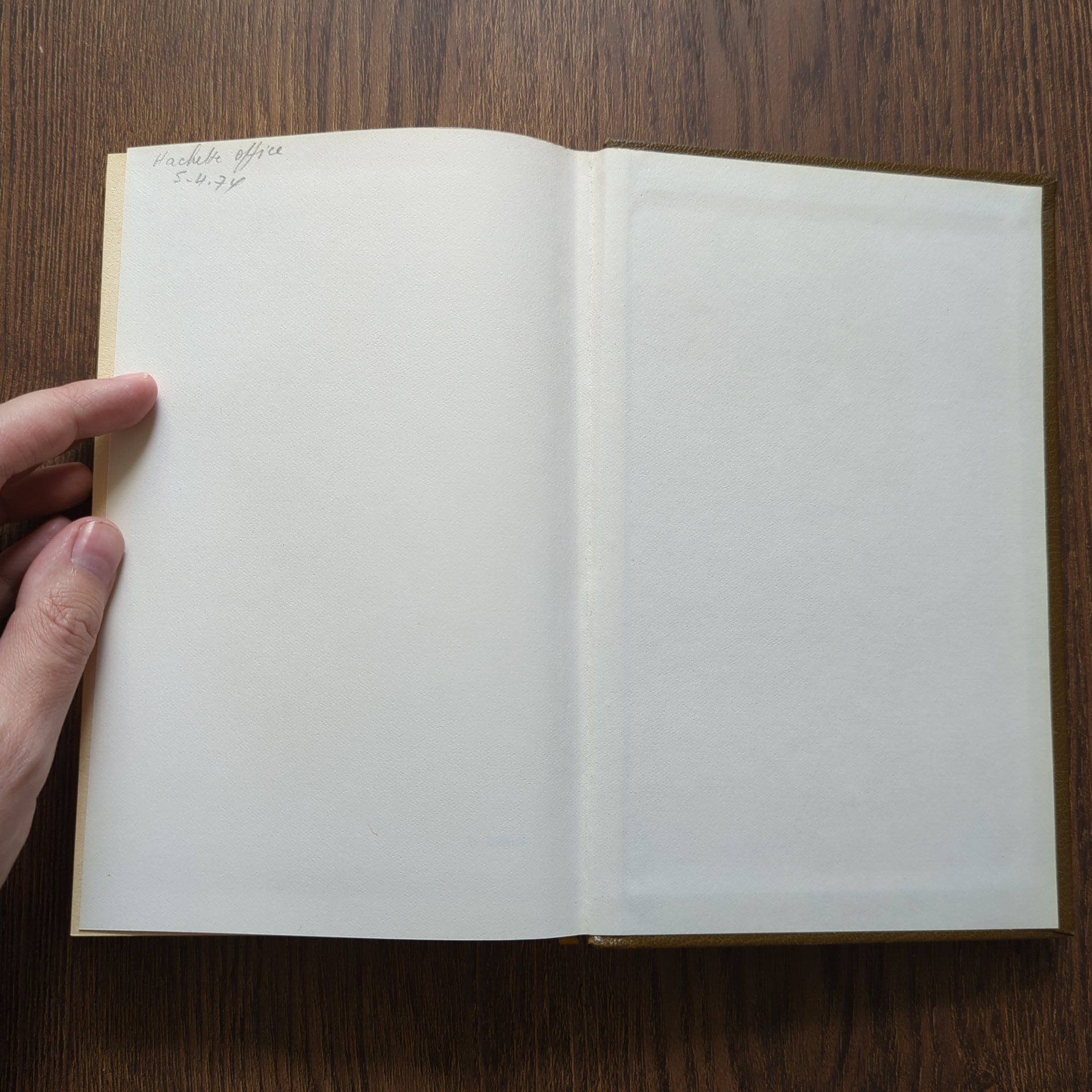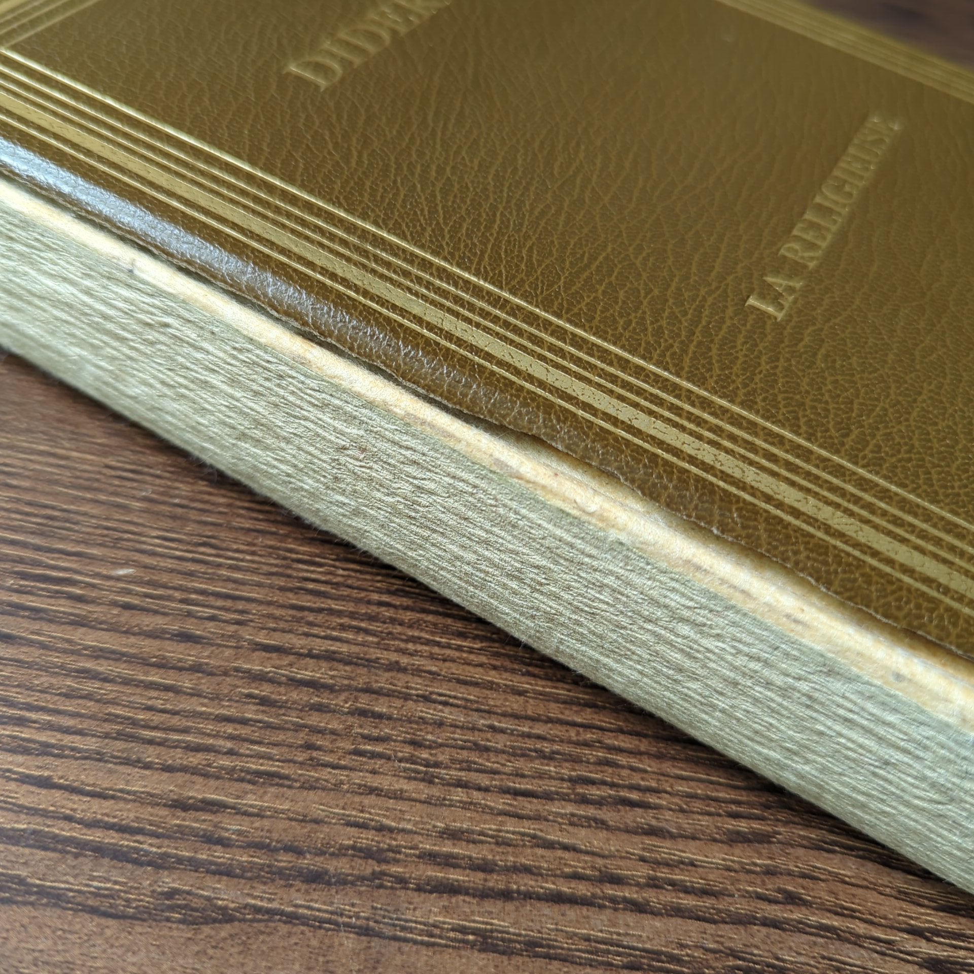 Remarques: Couverture de la reliure manquante; elle est donc exposée. Étonnamment, elle est toujours assez solide et les pages ne menacent pas de tomber; il serait toutefois évidemment recommandé de manipuler le livre avec soin. Les pages sont jaunies mais propres. Le texte est sans annotations. Déchirure au dos du livre.