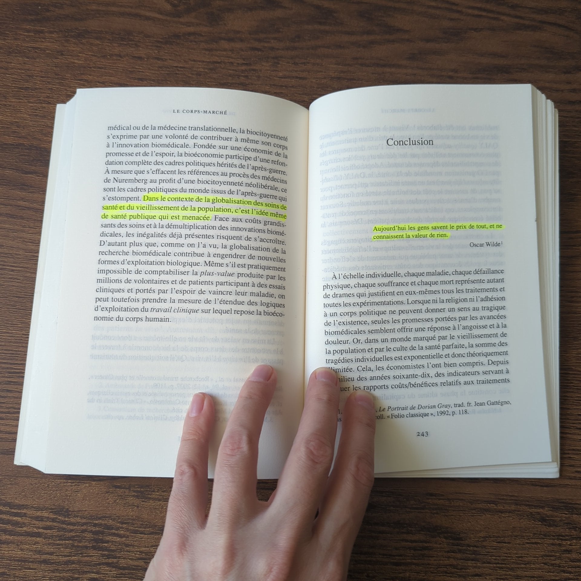 Ce livre passionnant éclaire les enjeux épistémologiques, politiques et éthiques de cette économie particulière. Ainsi montre-t-il que la récupération des tissus humains promulguée par l’industrie biomédicale et l’appel massif au don de tissus, d’ovules, de cellules ou d’échantillons d’ADN cachent une logique d’appropriation et de brevetage. De même fait-il apparaître que, du commerce des ovocytes à la production d’embryons surnuméraires, l’industrie de la procréation assistée repose sur une exploitation du corps féminin. Et inévitablement dans notre économie globalisée, le capital issu de la « valorisation » du corps parcellisé se nourrit des corps des plus démunis, avec la sous-traitance des essais cliniques vers les pays émergents, ou le tourisme médical. Ainsi, ce n’est plus la force de travail qui produit de la valeur, mais la vie en elle-même qui est réduite à sa pure productivité.