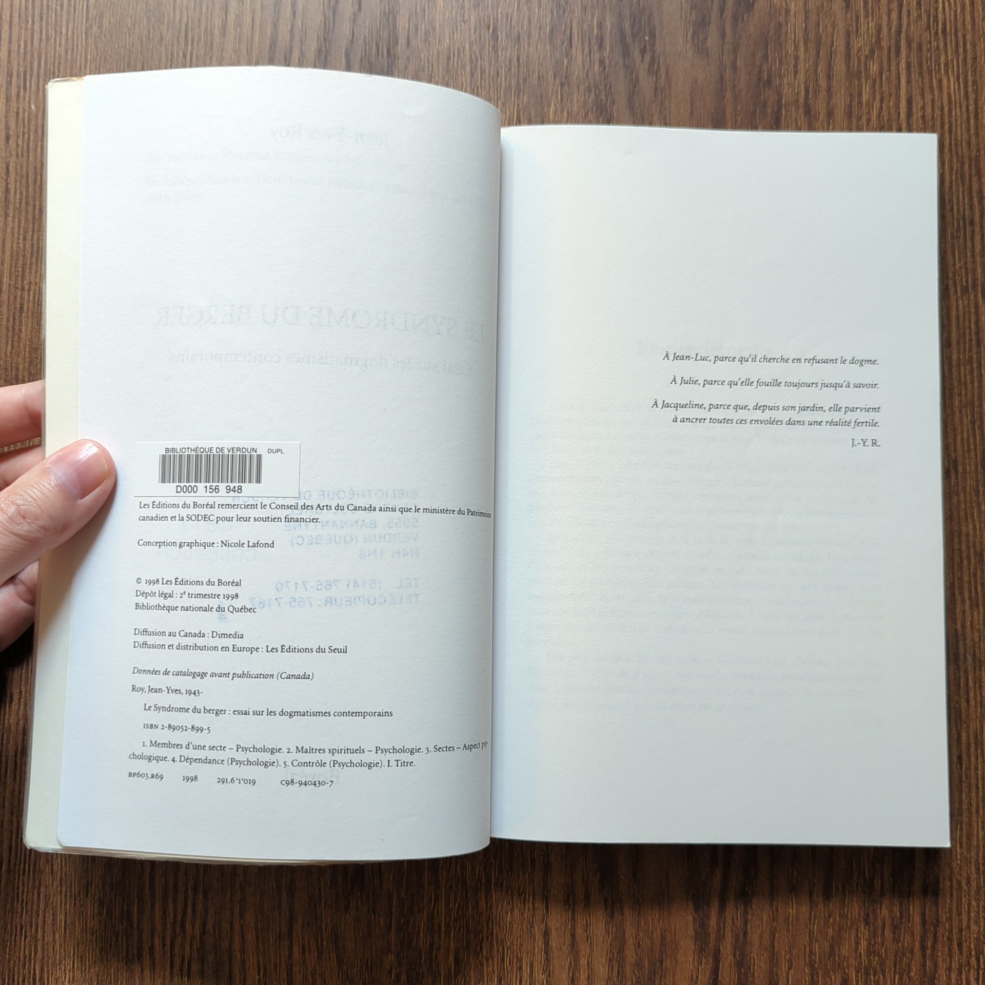Aussi séduisantes, voire aussi justes qu'elles puissent être, les théories du berger prédateur ont toutefois en commun une même lacune. Une secte ne peut exister sans la contribution d'un personnage singulier: l'adepte. La vraie question n'est-elle pas en effet de savoir pourquoi des gens adhèrent à de pareilles propositions? Qu'est-ce qui les attire, les fascine et que toutes les dénonciations de toutes les séductions charismatiques du monde omettent de décrire? C'est cette part de l'adepte que Jean-Yves Roy tente ici de cerner, en développant le concept de "dépendance dogmatique".