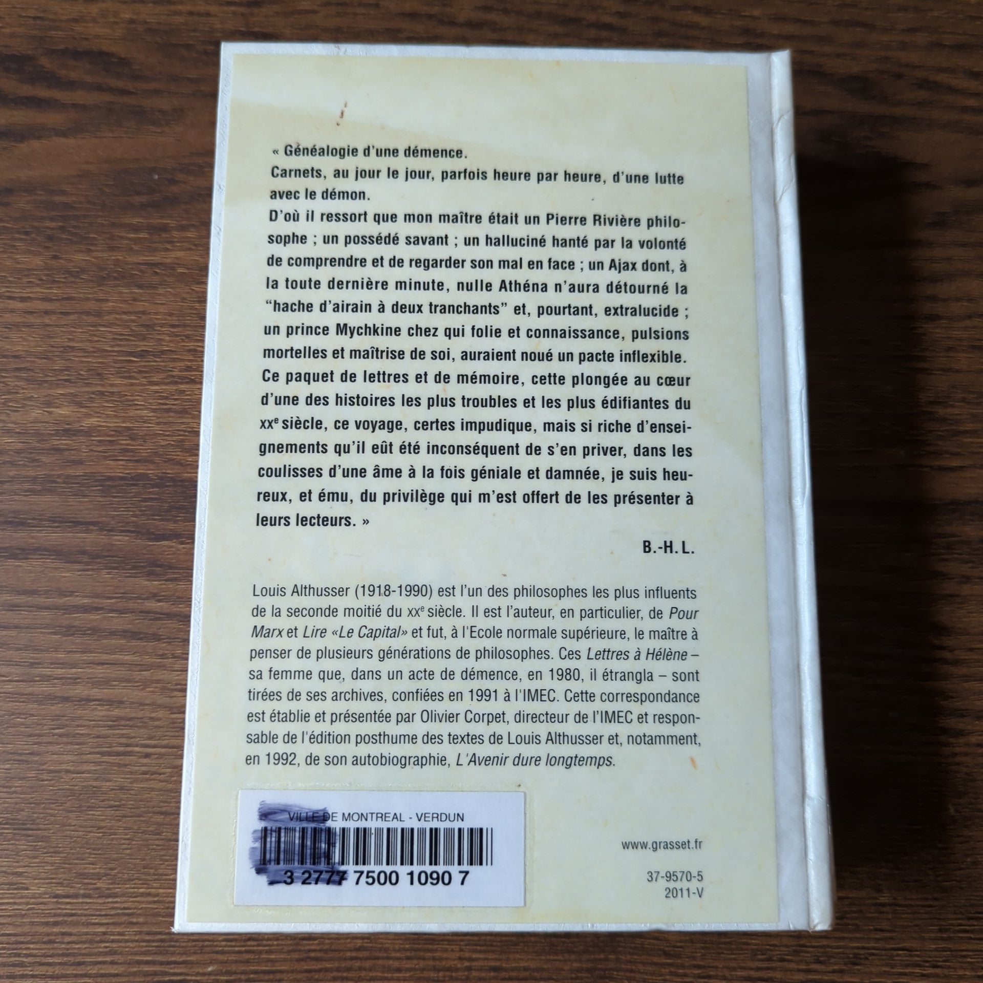 Louis Althusser (1918-1990) est l'un des philosophes les plus influents de la seconde moitié du XXè siècle. Il est l'auteur, en particulier, de Pour Marx et Lire "Le Capital" et fut, à l'Ecole normale supérieure, le maître à penser de plusieurs générations de philosophes. Ces Lettres à Hélène - sa femme que, dans un acte de démence, en 1980, il étrangla - sont tirées de ses archives, confiées en 1991 à l'IMEC. Cette correspondance est établie et présentée par Olivier Corpet, directeur de l'IMEC et responsable de l'édition posthume des textes de Louis Althusser et, notamment, en 1992, de son autobiographie, L'Avenir dure longtemps.