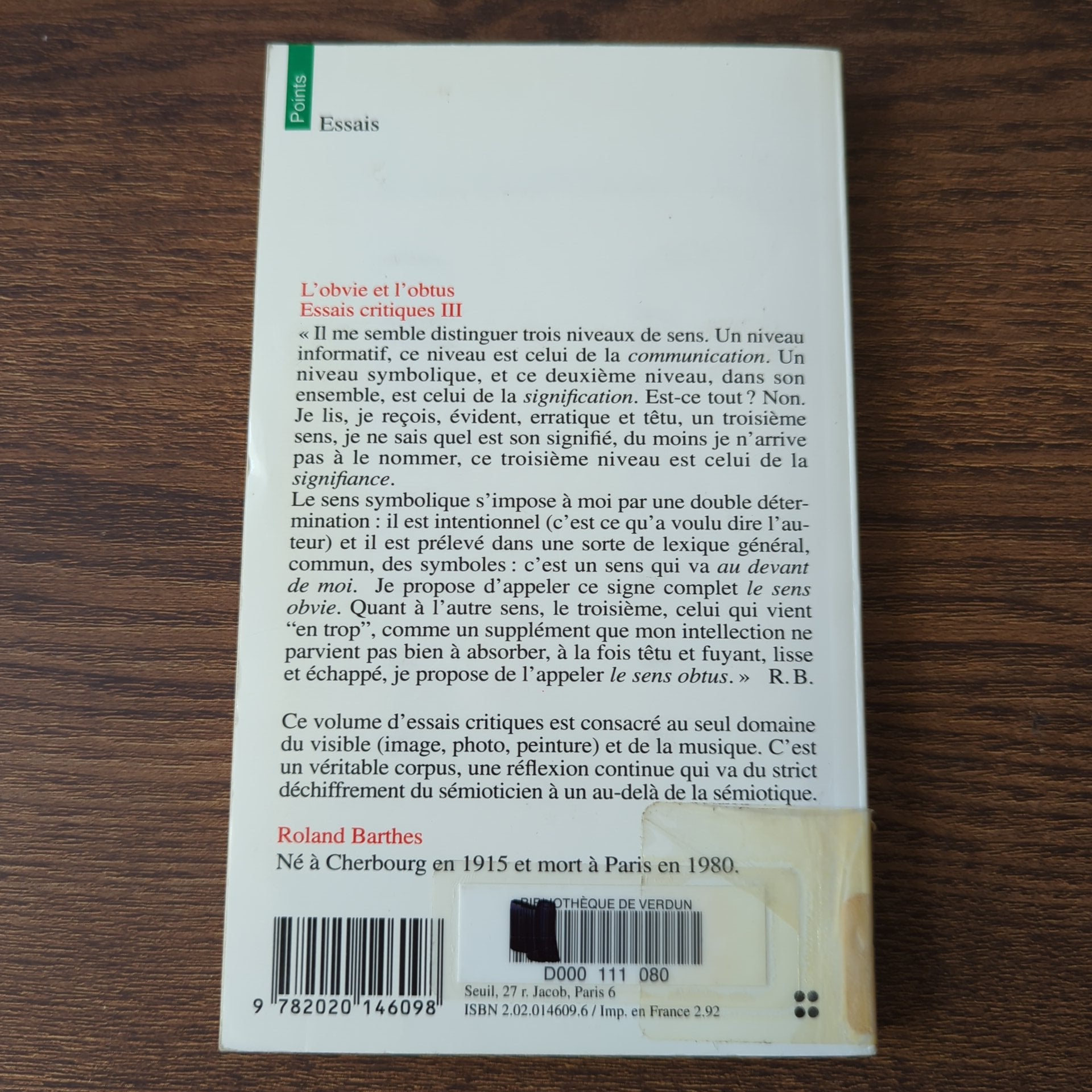 Roland Barthes | Essais | Éditions du Seuil | Date de parution: 1992 | ISBN-13: 9782020146098 | Couverture: Souple | Français | 283 pages