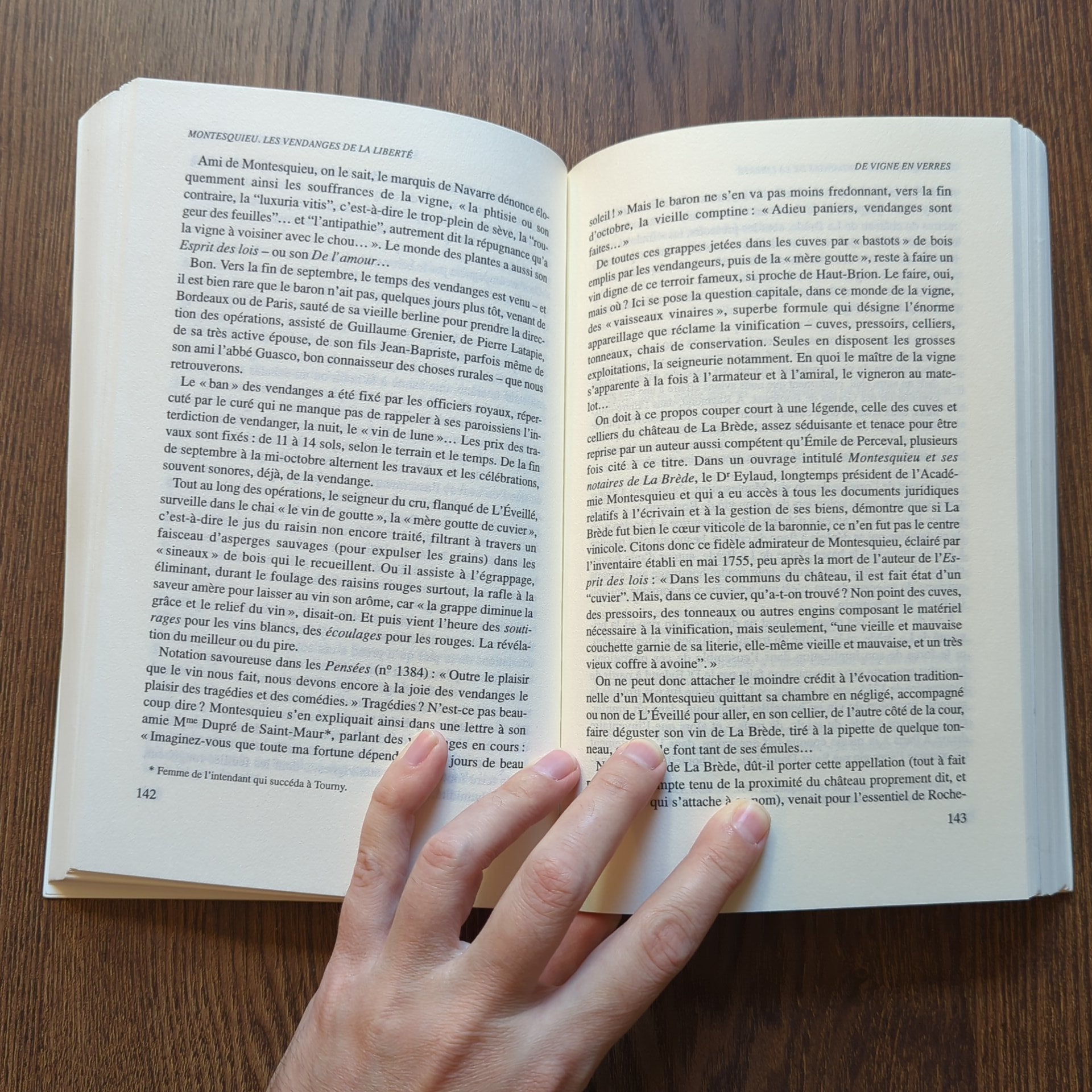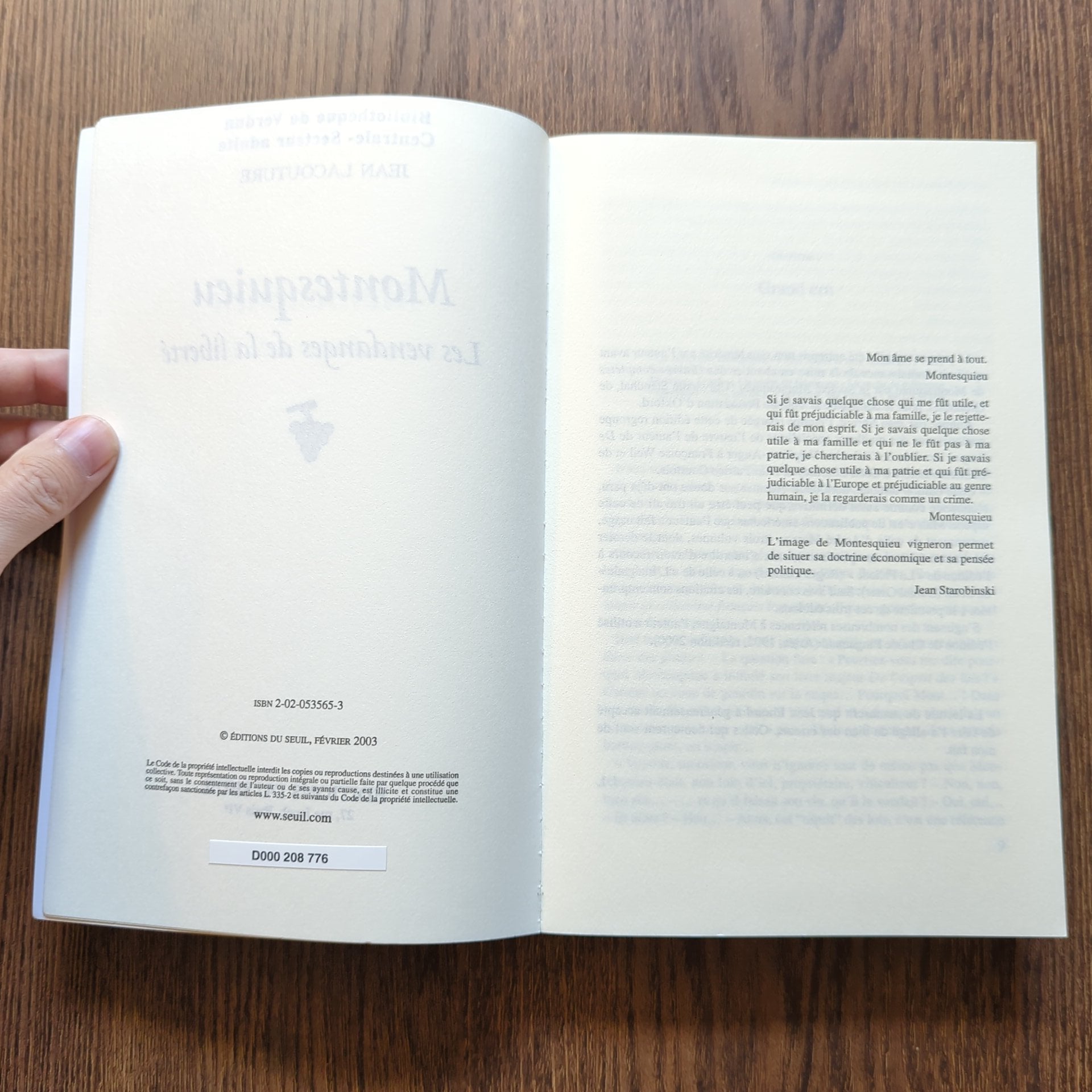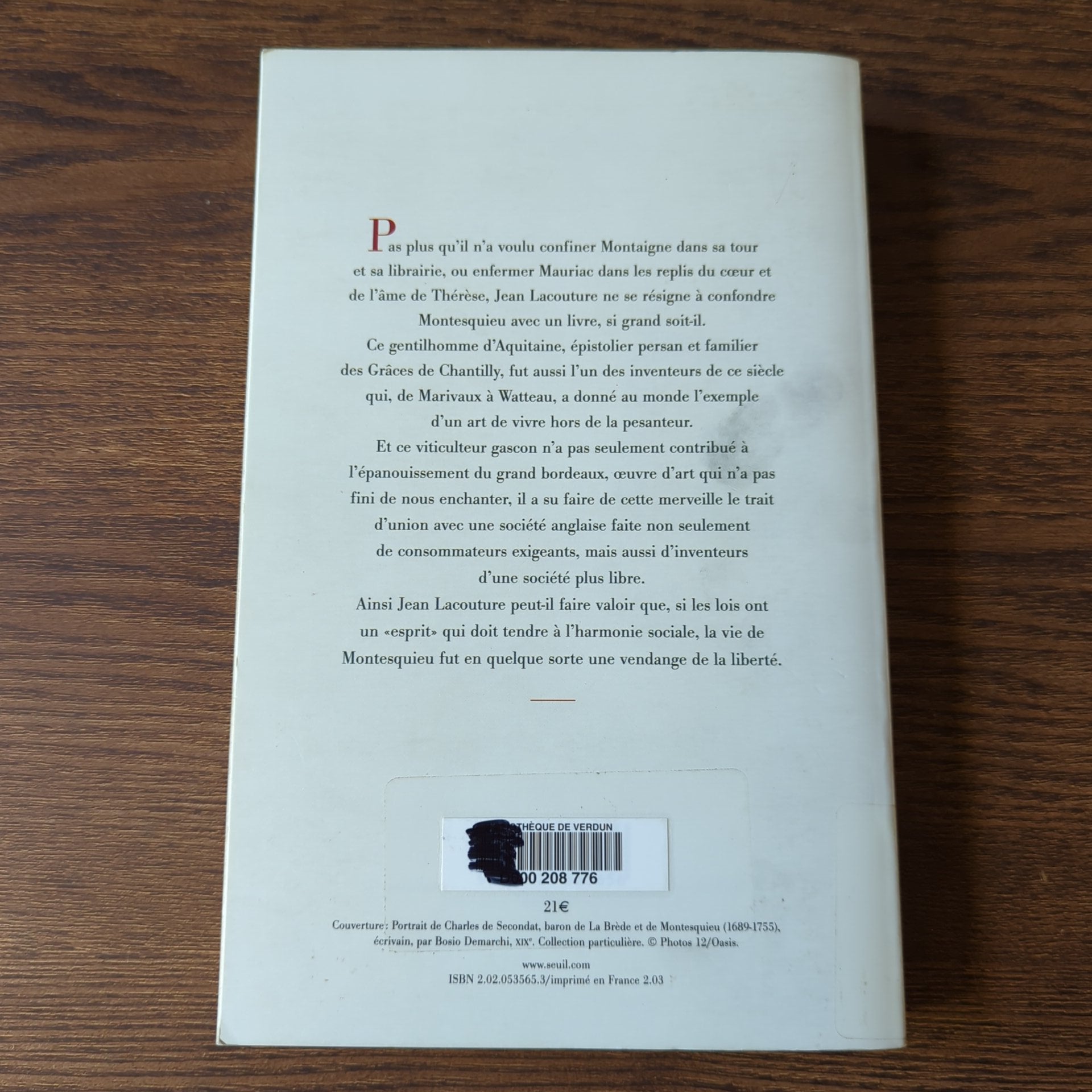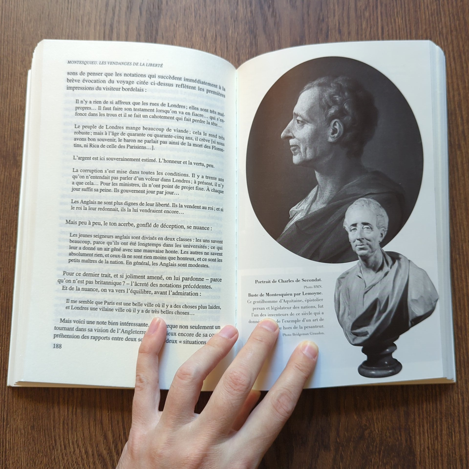 Ainsi Jean Lacouture peut-il faire valoir que, si les lois ont un esprit qui doit tendre à l'harmonie sociale, la vie de Montesquieu fut en quelque sorte une vendange de la liberté.