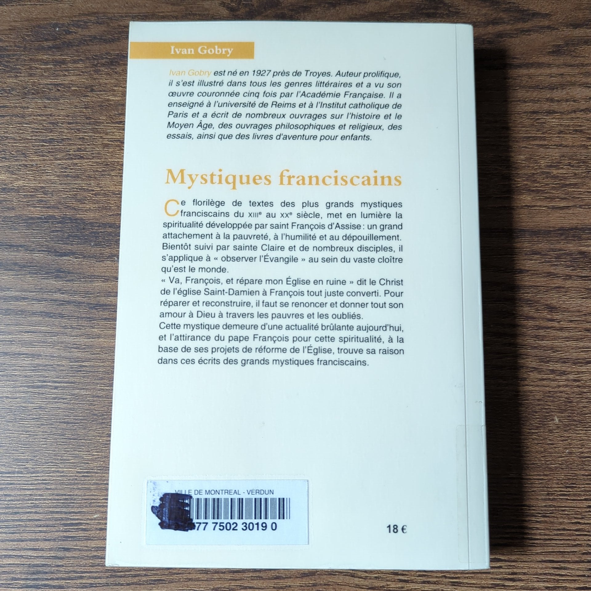 Ce florilège de textes des plus grands mystiques franciscains du XIè au XXè siècle, met en lumière la spiritualité développée par saint François d'Assise: un grand attachement à la pauvreté, à l'humilité et au dépouillement. Bientôt suivi par sainte Claire et de nombreux disciples, il s'applique à observer l'Évangile au sein du vaste cloître qu'est le monde.