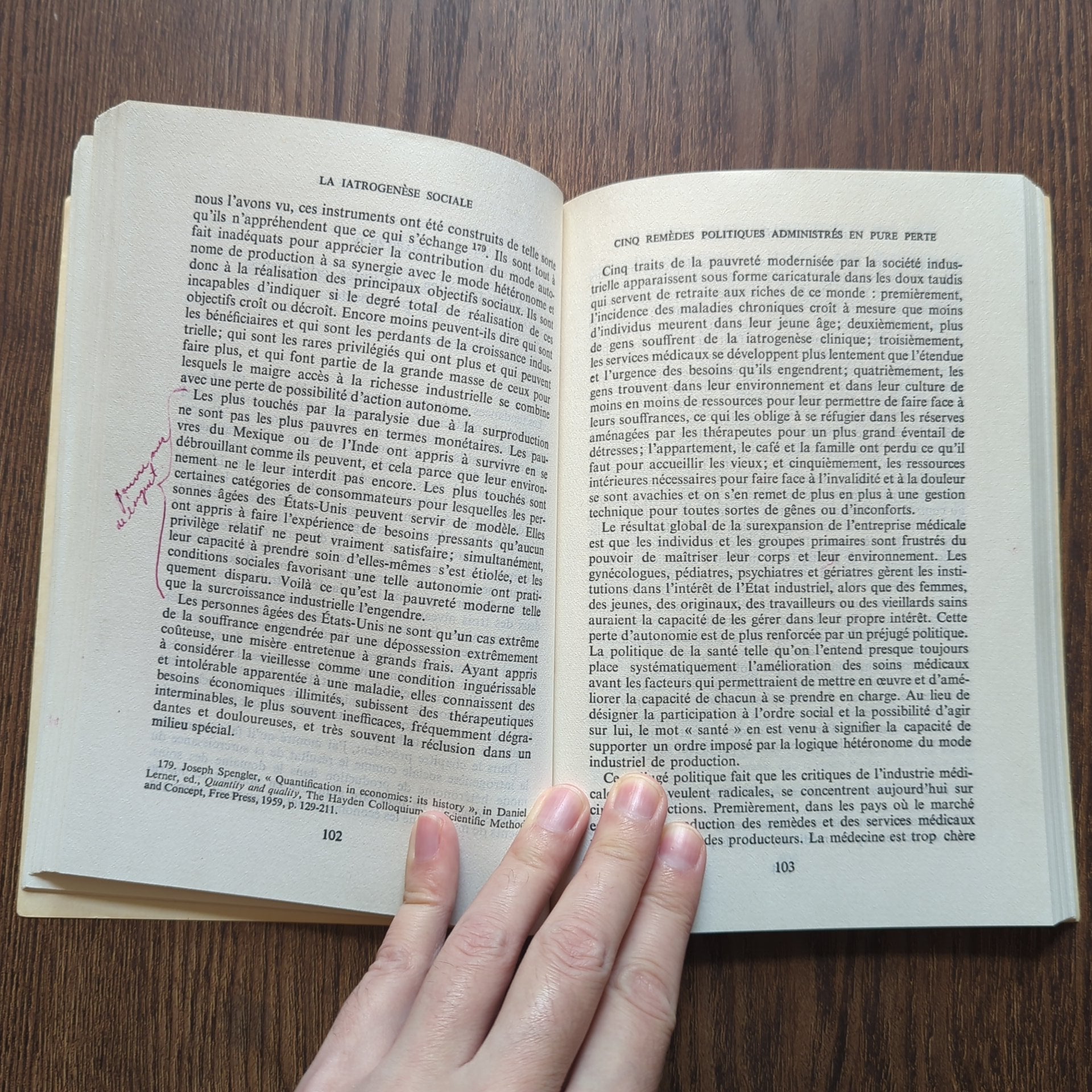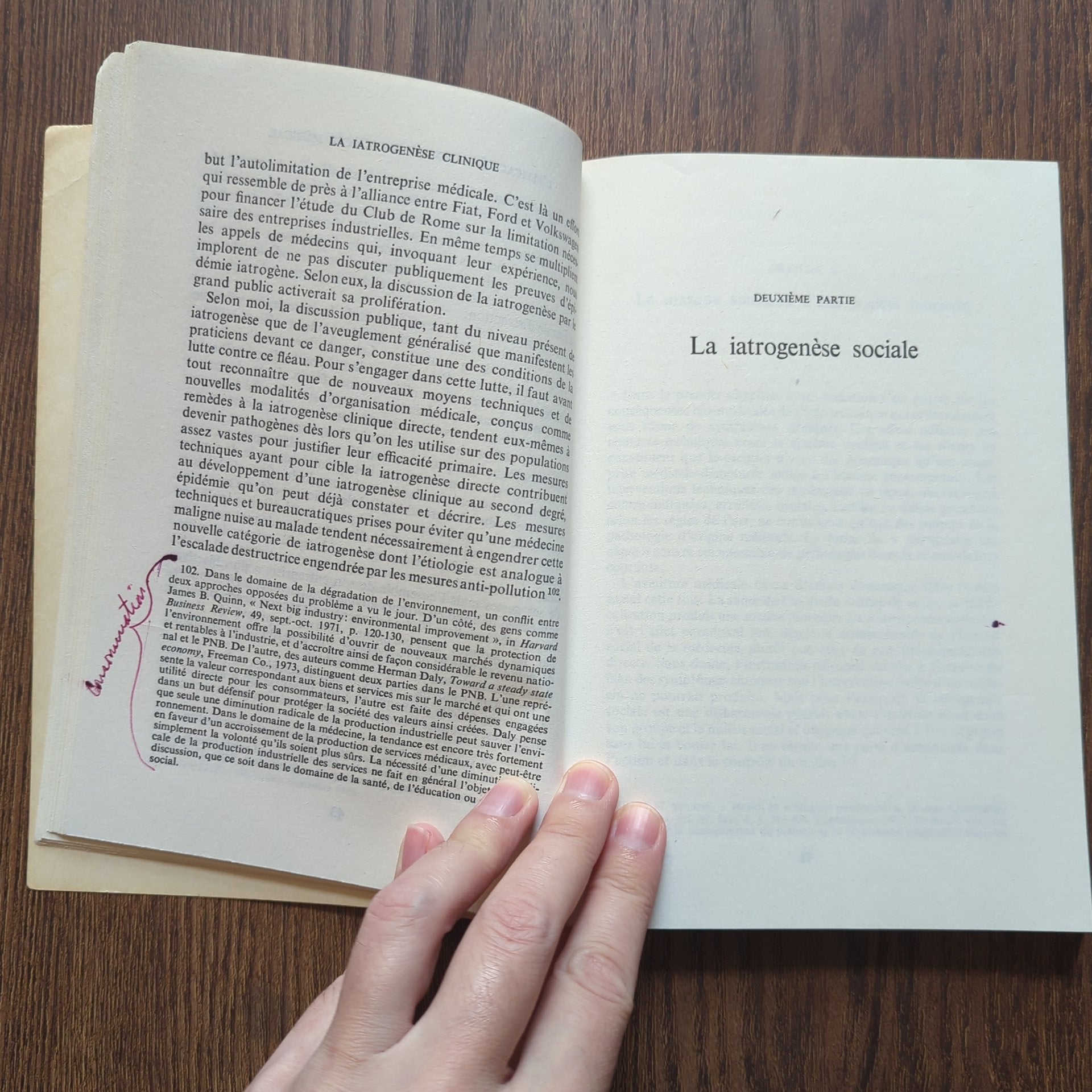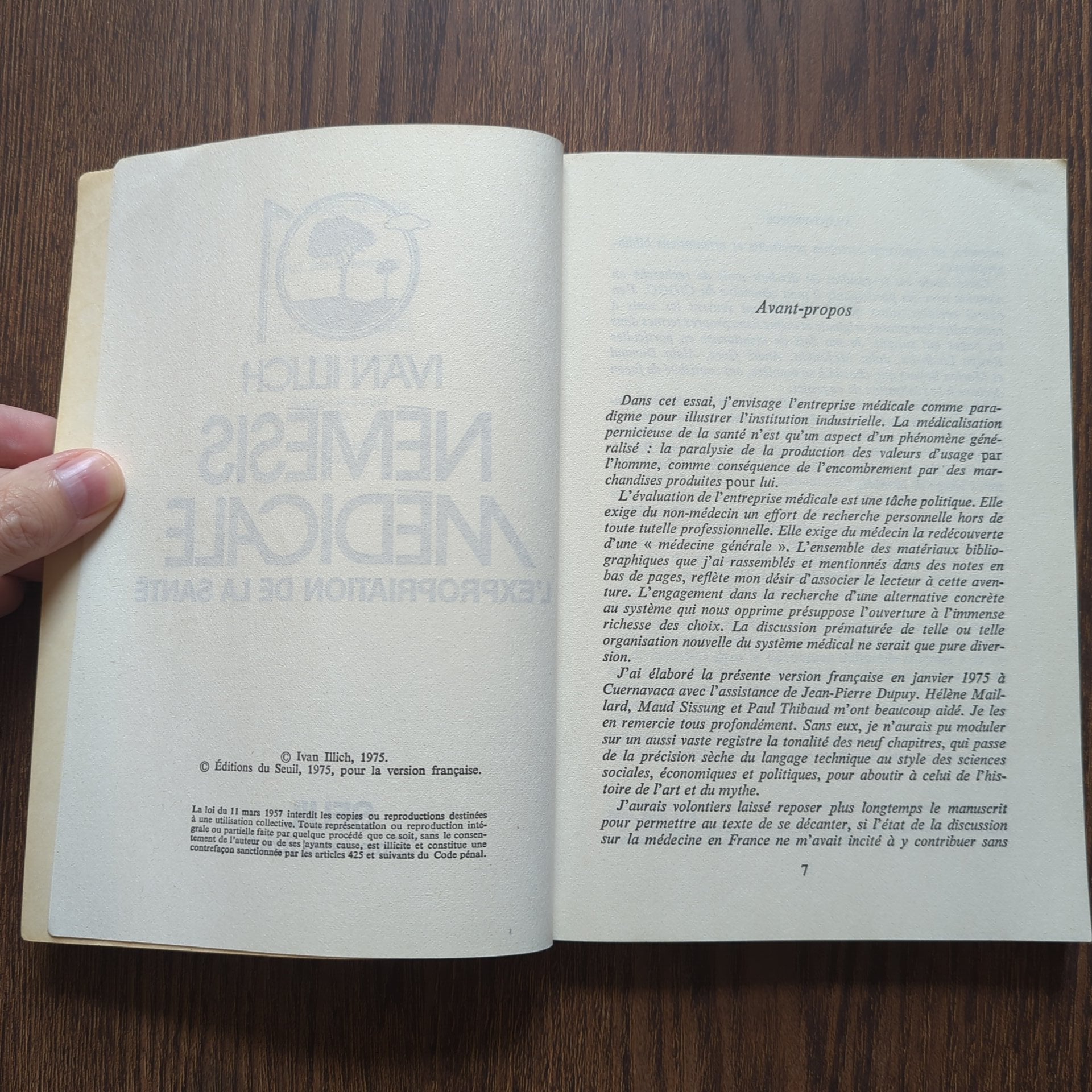 Lorsque leur développement dépasse certains seuils critiques, les grands services institutionnalisés deviennent les principaux obstacles à la réalisation des objectifs qu'ils visent. Ce contresens tragique, cette "contreproductivité paradoxale", version moderne du mythe grec de la Némésis, Ivan Illich nous l'a déjà fait percevoir dans ses travaux antérieurs sur l'école (Société sans école), les transports (Énergie et équité), la société industrielle en général (La Convivialité et Libérer l'avenir). Il en fait ici la théorie systématique à propos de la médecine.