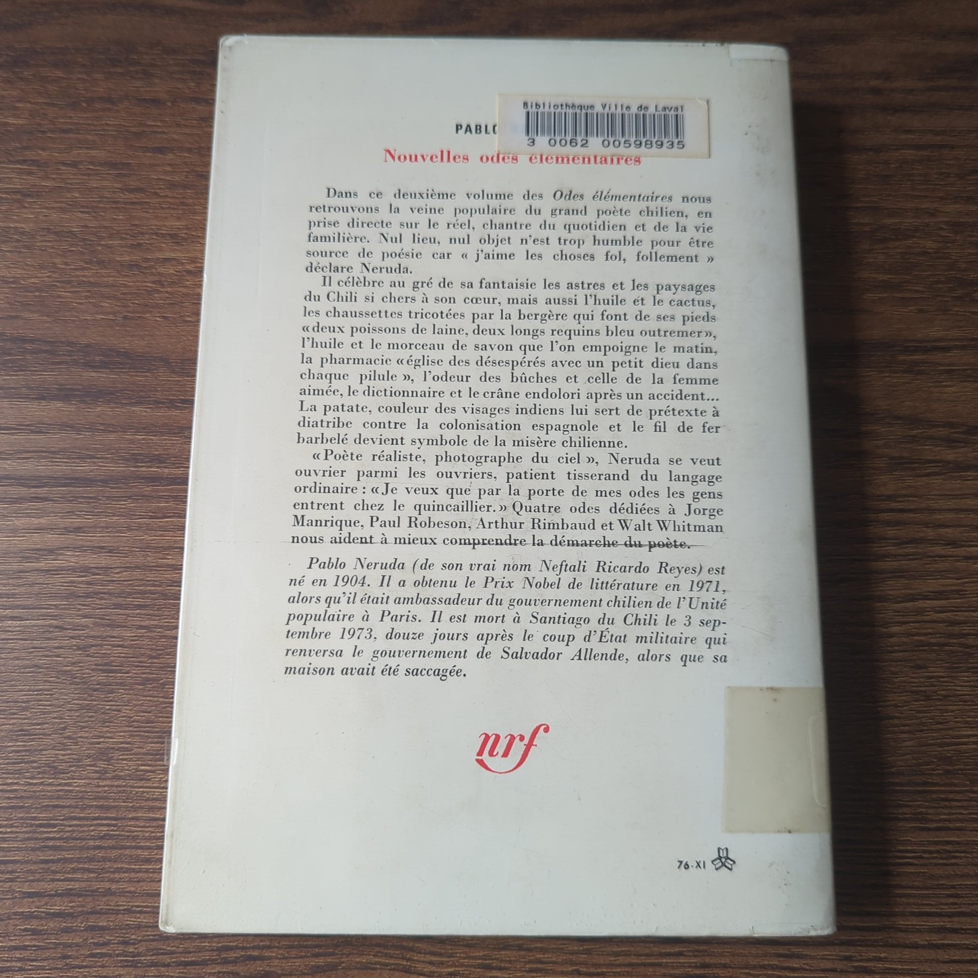 Pablo Neruda, traduction de Jean-Francis Reille | Littérature et Arts | Gallimard | Date de parution: 1976 | ISBN-13: 9782070294923 | Couverture: Souple | Français