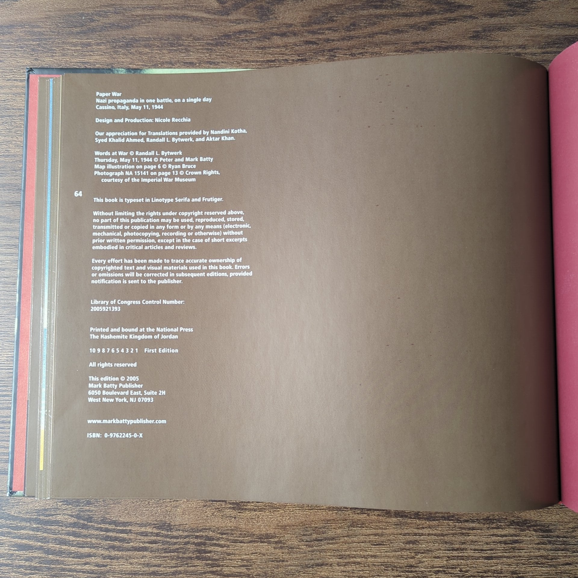 It is print on paper's most sinister manifestation, made to change perceptions, destroy morale and help take lives. Paper War offers a rare opportunity to understand the dynamics of propaganda in the timeless tale of the flexible and immediate use of information in one battle, on a single day - Cassino, Italy, May 11, 1944.
