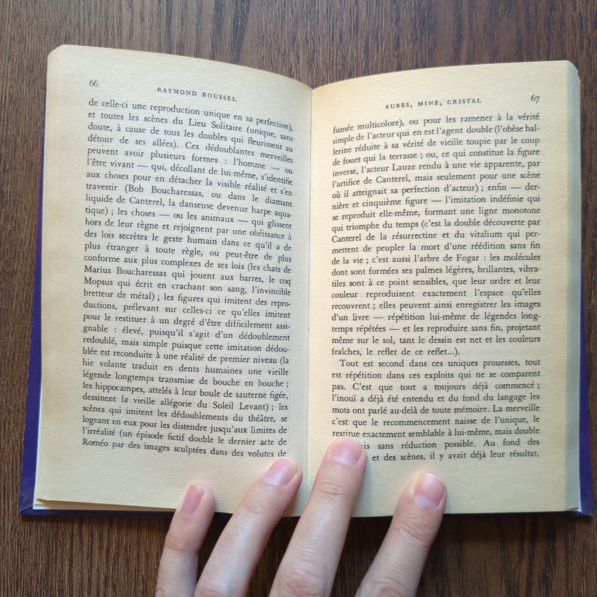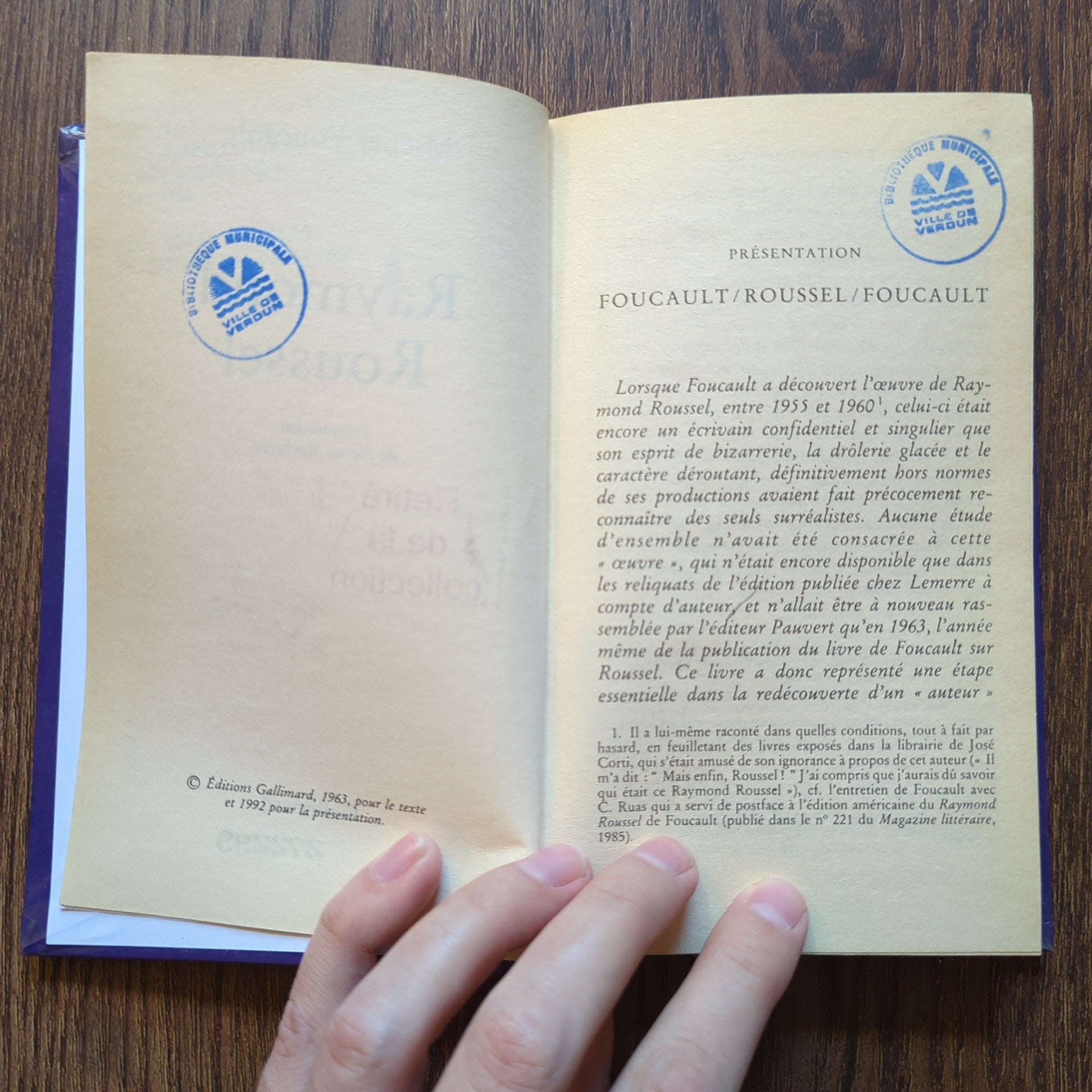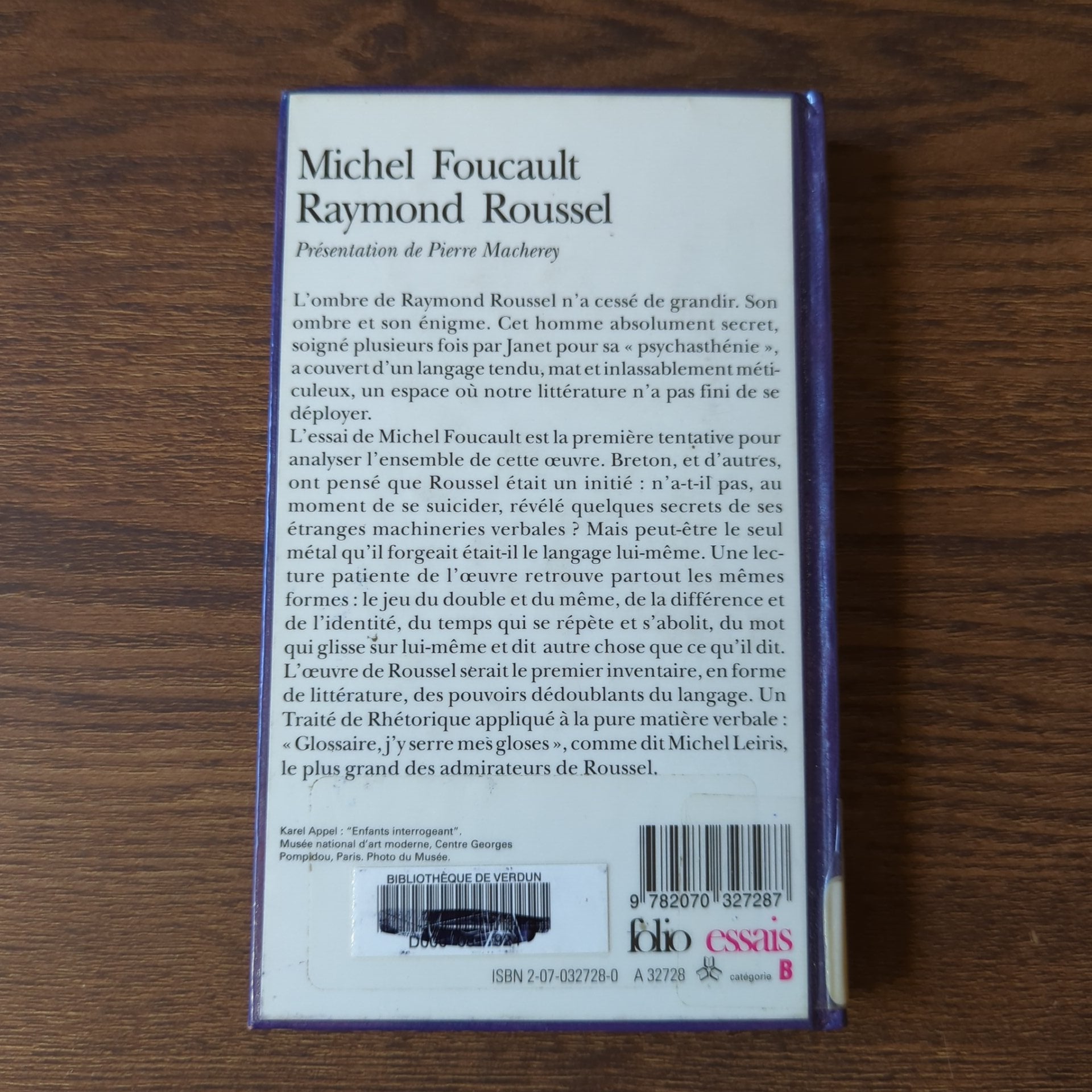 L'essai de Michel Foucault est la première tentative pour analyser l'ensemble de cette œuvre. Breton, et d'autres, ont pensé que Roussel était un initié: n'a-t-il pas, au moment de se suicider, révélé quelques secrets de ses étranges machineries verbales? Mais peut-être le seul métal qu'il forgeait était-il le langage lui-même. Une lecture patiente de l'œuvre retrouve partout les mêmes formes: le jeu du double et du même, de la différence et de l'identité, du temps qui se répète et s'abolit, du mot qui glisse sur lui-même et dit autre chose que ce qu'il dit. L'œuvre de Roussel serait le premier inventaire, en forme de littérature, des pouvoirs dédoublants du langage. Un Traité de Rhétorique appliqué à la pure matière verbale : "Glossaire, j'y serre mes gloses", comme dit Michel Leiris, le plus grand des admirateurs de Roussel.