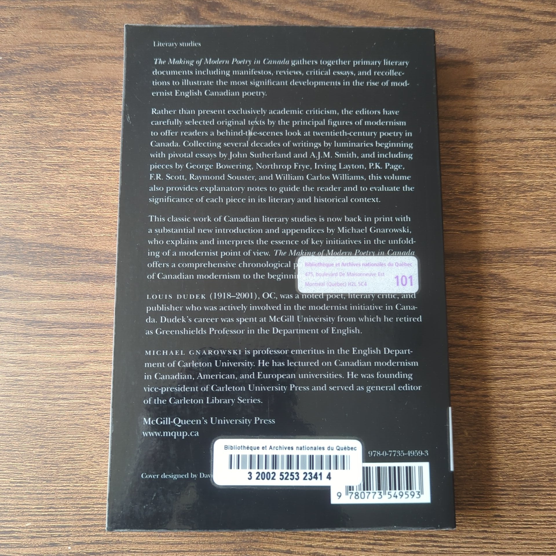 This classic work of Canadian literary studies is now back in print with a substantial new introduction and appendices by Michael Gnarowski, who explains and interprets the essence of key initiatives in the unfolding of a modernist point of view. The Making of Modern Poetry in Canada offers a comprehensive chronological path from the earliest examples of Canadian modernism to the beginning of the postmodern period.