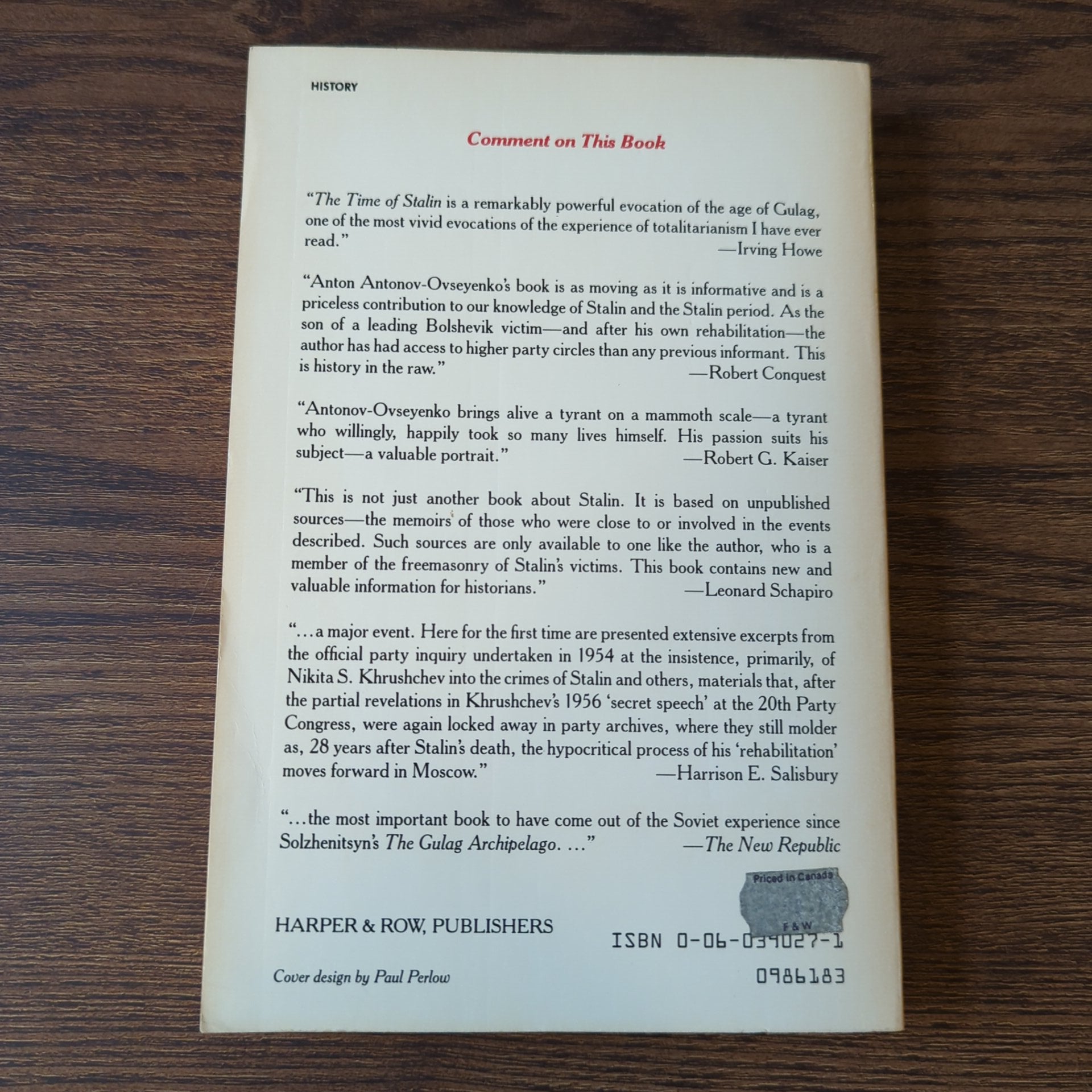 "Anton Antonov-Ovseyenko's book is as moving as it is informative and is a priceless contribution to our knowledge of Stalin and the Stalin period. As the son of a leading Bolshevik victim and - after his own rehabilitation - the author has had access to higher party circles than any previous informant. This is history in the raw."