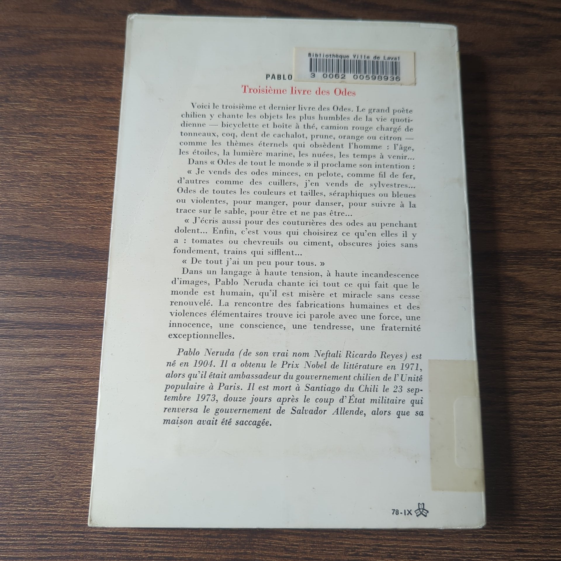 Pablo Neruda, traduction de Jean-Francis Reille | Littérature et Arts | Gallimard | Date de parution: 1978 | ISBN-13: 9782070298037 | Couverture: Souple | Français