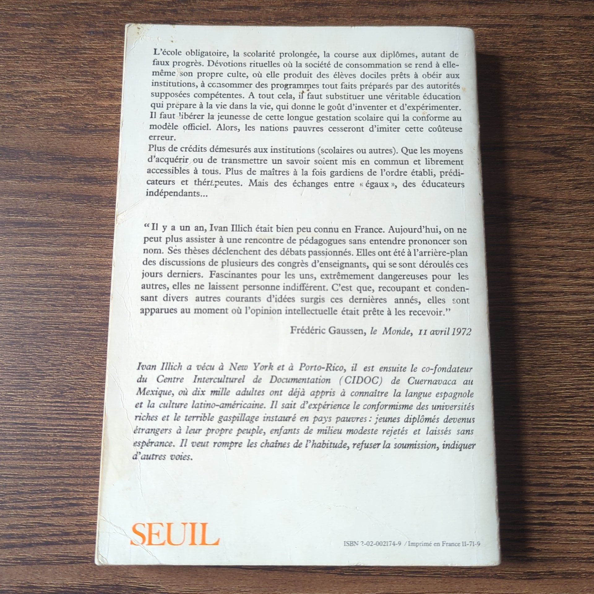 Ivan Illich | Essais | Seuil | Date de parution: 1971 | ISBN-13: 9782020021746 | Couverture: Souple | Français